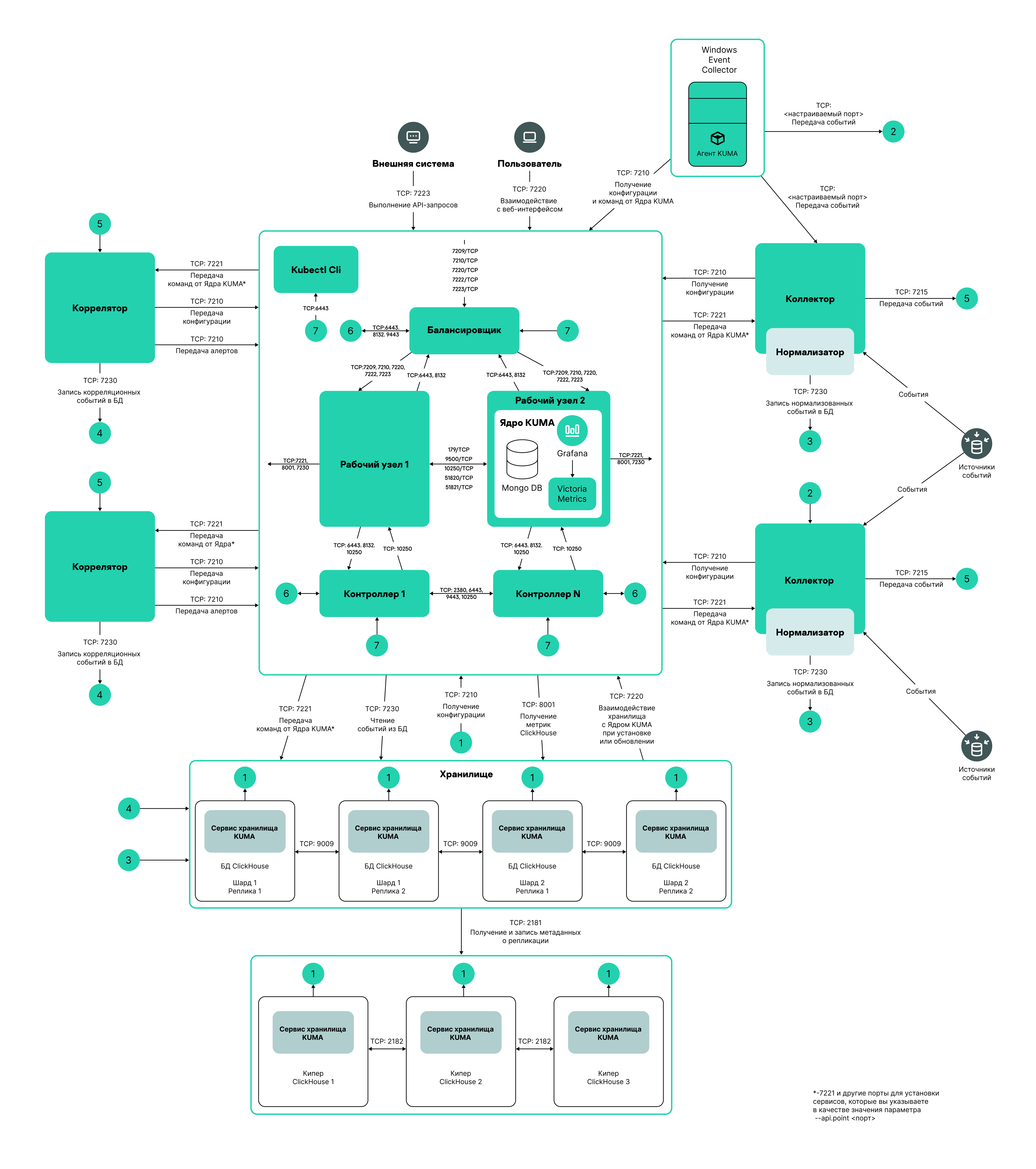 Вы можете установить сервисы KUMA на разных серверах: конфигурацию для распределенной установки вы можете описать в файле инвентаря distributed.inventory.yml.
