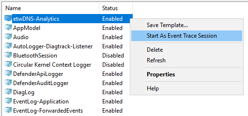 - Откройте контекстное меню созданного поставщика и выберите пункт Запустить как сеанс отслеживания событий.