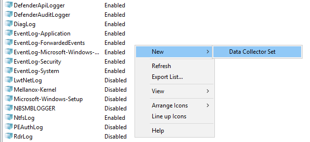 - Откройте контекстное меню директории Сеансы отслеживания событий запуска и выберите пункт Создать → Группа сборщиков данных.