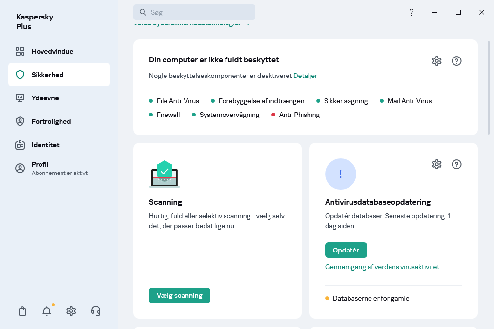 Som udgangspunkt bliver databaserne og programmodulerne opdateret automatisk. Du behøver ikke gøre noget. Hvis automatisk opdatering er slået fra, kan du opdatere programdatabaser og moduler manuelt.