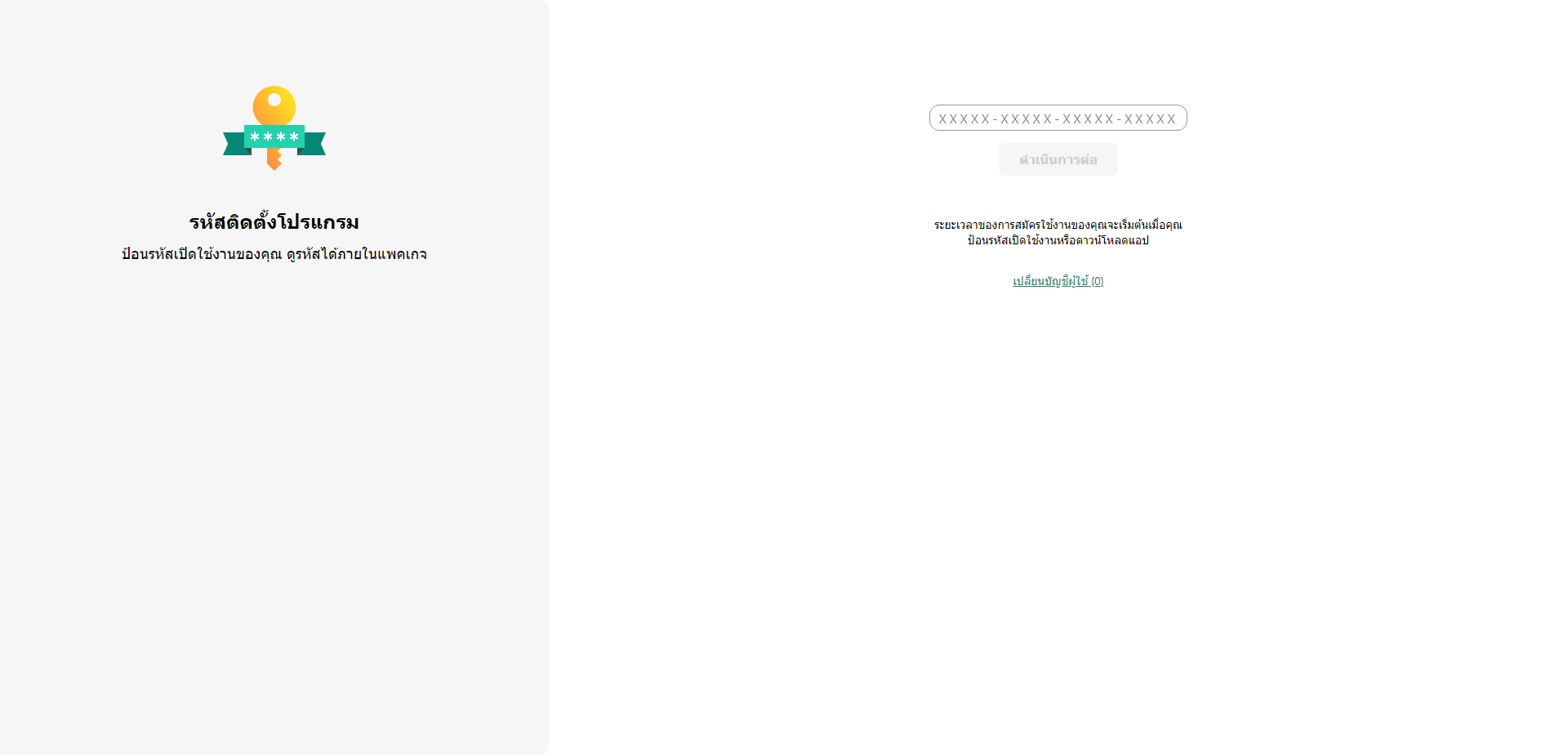 3. ในช่อง มีรหัสติดตั้งโปรแกรมอยู่แล้วใช่หรือไม่ ที่ส่วนล่างของหน้า ให้ป้อนรหัสเปิดใช้งานในช่องป้อนข้อมูล