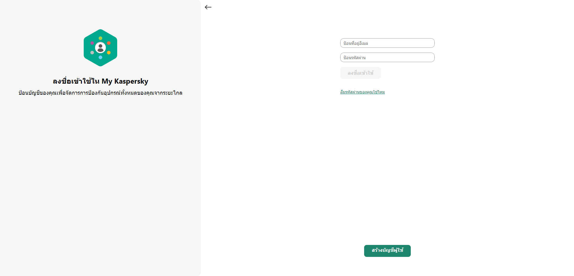 2. สร้างบัญชี My Kaspersky หรือลงชื่อเข้าใช้บัญชีที่มีอยู่