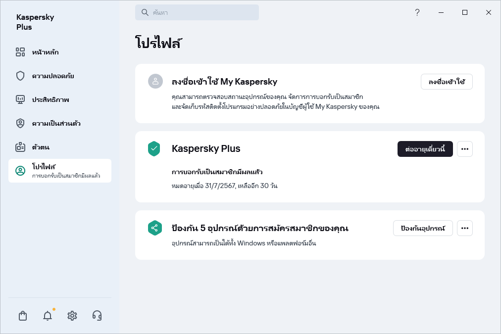 สำหรับรายละเอียดเกี่ยวกับการทำงานทั้งหมดของบัญชี My Kaspersky โปรดดูที่ My Kaspersky Help