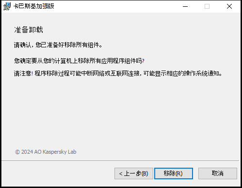 在“开始”菜单,选择“所有应用程序” → “卡巴斯基” → “卸载卡巴斯基”。
