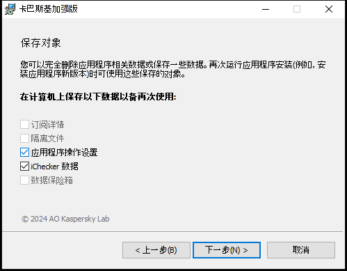 在该步骤中,您可以指定希望保留应用程序所用的哪些数据,以在下次安装应用程序期间(如应用程序的更新版本)重新使用。